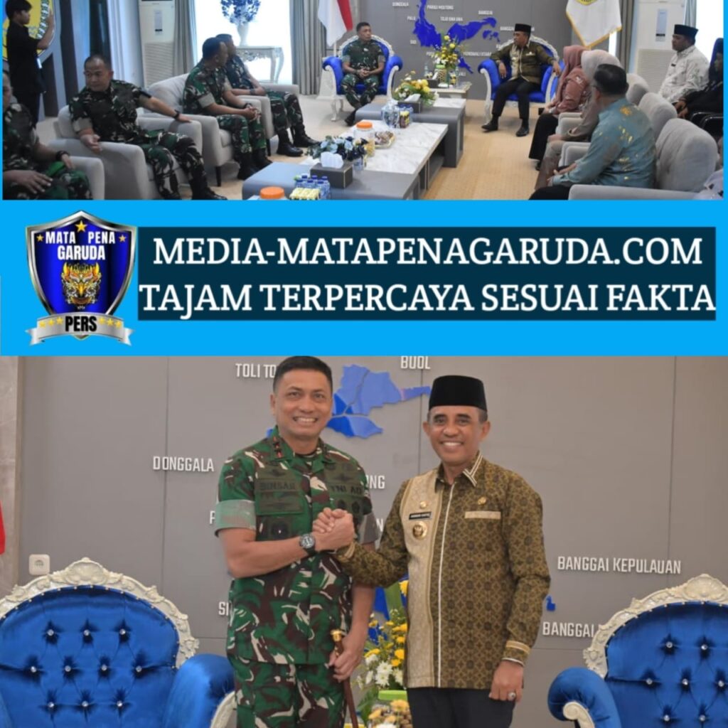 Palu – Panglima Komando Daerah Militer XXIII/Palaka Wira, Mayjen TNI Jonathan Binsar Perluhutan Sianipar, kunjungan silaturahmi ke Kantor Gubernur Sulawesi Tengah di Jl. Sam Ratulangi No.101, Besusu Barat, Kota Palu, Kamis (04/09/2025).