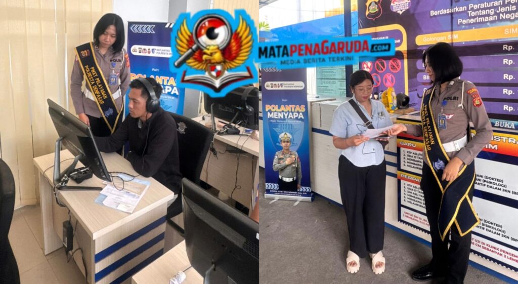 DENPASAR,. – Suasana pelayanan publik di Polresta Denpasar, terlihat semakin prima berkat kehadiran personel Polantas yang sigap. Dalam sebuah momen yang terekam dalam gambar, terlihat seorang petugas Polantas yang berdedikasi sedang berinteraksi dengan masyarakat di loket pelayanan penerbitan dan perpanjangan Surat Izin Mengemudi (SIM).