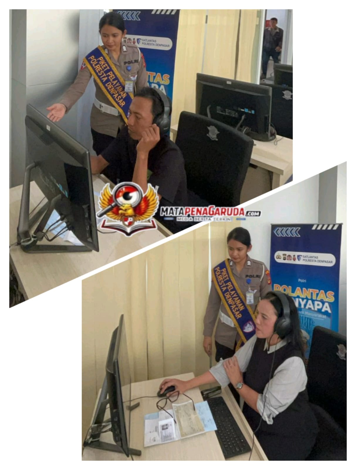 Denpasar – Dalam rangka meningkatkan kualitas pelayanan kepada masyarakat, personel Satuan Penyelenggara Administrasi SIM (Satpas SIM) Polresta Denpasar memberikan pendampingan kepada para pemohon SIM yang mengikuti ujian teori berbasis komputer, Jumat (30/1/2026). Hal ini sejalan dengan program Lantas yaitu Polantas Menyapa.