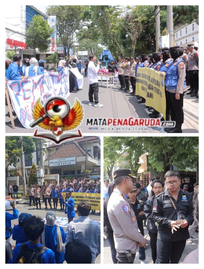 LAMONGAN – Polres Lamongan Polda Jatim memberikan pelayanan dan pengamanan secara humanis saat masa PC PMII Lamongan, menggelar aksi di Gedung DPRD Kabupaten Lamongan dan Gedung Pemerintah Kabupaten Lamongan, pada Senin (02/02).