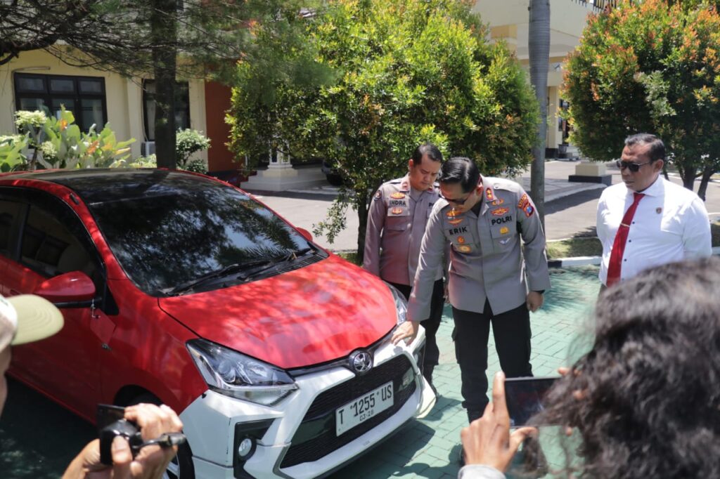 Dari tangan HK, petugas menyita barang bukti berupa Satu unit mobil Toyota Agya warna putih dengan cutting merah yang di gunakan dalam aksi kejahatan.
