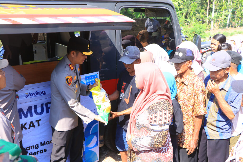 Dalam kegiatan tersebut, Kapolres Ngawi AKBP Charles Pandapotan Tampubolon secara langsung menyerahkan bantuan beras SPHP kepada masyarakat.
