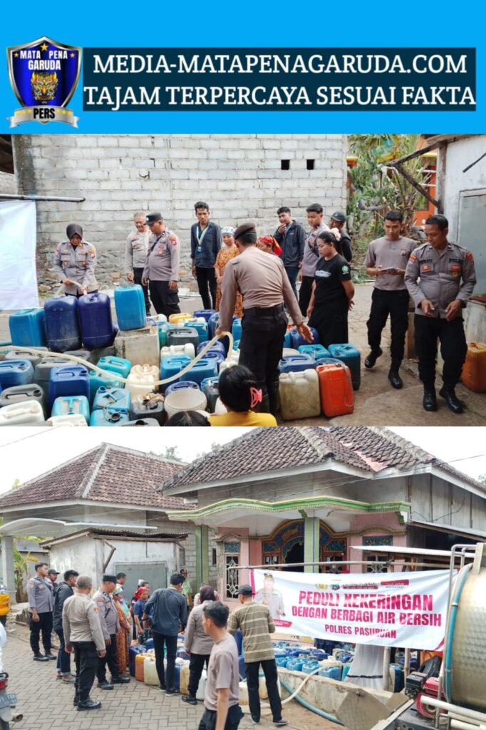 Melihat hal tersebut, Kapolres Pasuruan, AKBP Jazuli Dani Iriawan memerintahkan anggotanya untuk droping air bersih di lokasi terdampak kekeringan.