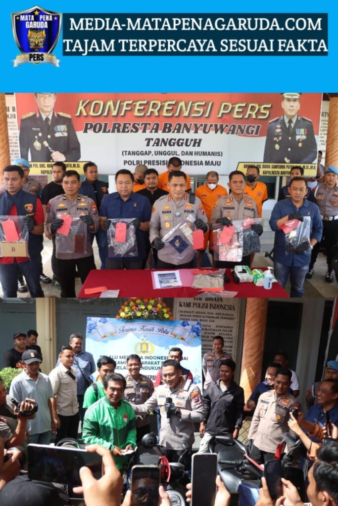 Sebagai bentuk pelayanan kepada masyarakat, Polresta Banyuwangi Polda Jatim juga mengembalikan motor hasil curian kepada pemilik sahnya.