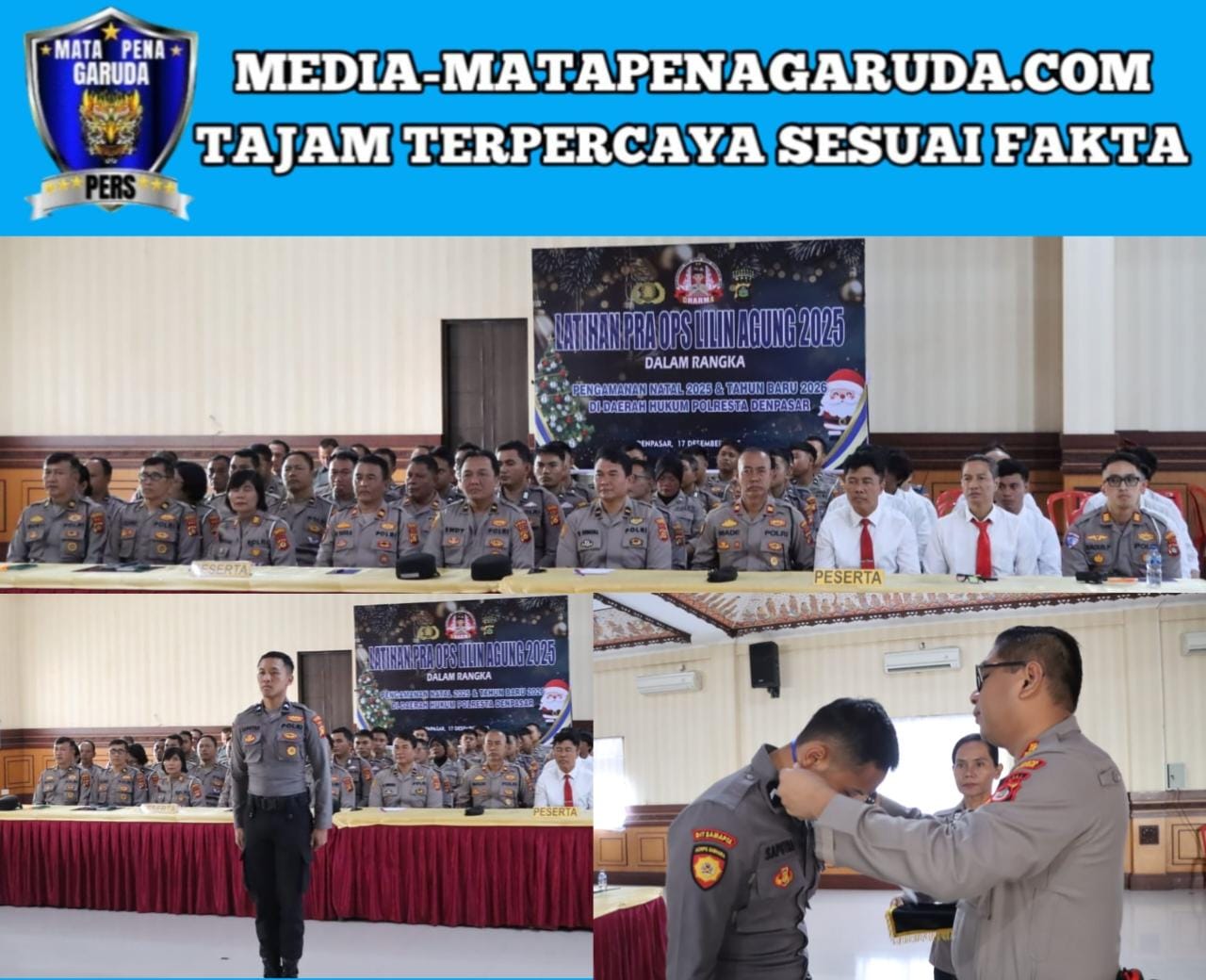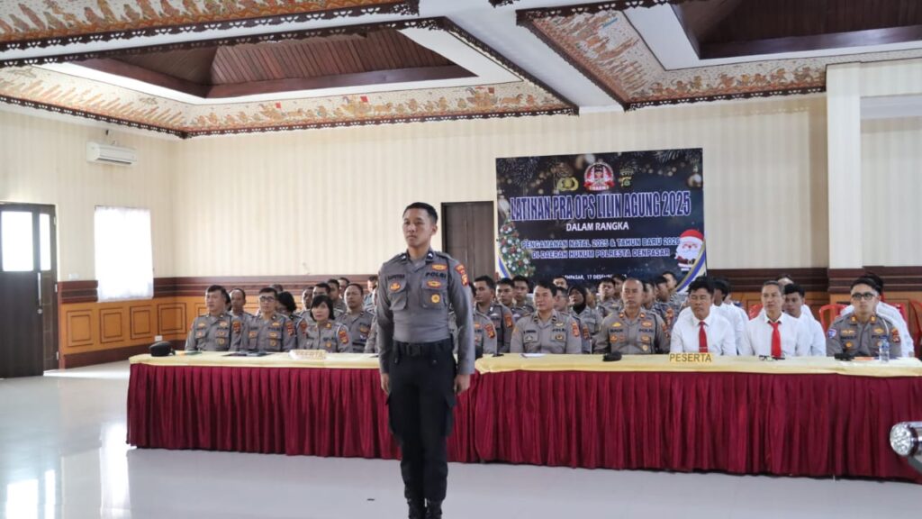 DENPASAR,.- Dalam rangka pengamanan Perayaan Natal 2025 dan Tahun Baru 2026, Polresta Denpasar Polda Bali menggelar Latihan Pra Operasi (Lat Pra Ops) Lilin Agung 2025. Kegiatan tersebut diawali dengan upacara pembukaan yang di laksanakan pada Hari Rabu, 17 Desember 2025, bertempat di Gedung Pesat Gatra Polresta Denpasar.