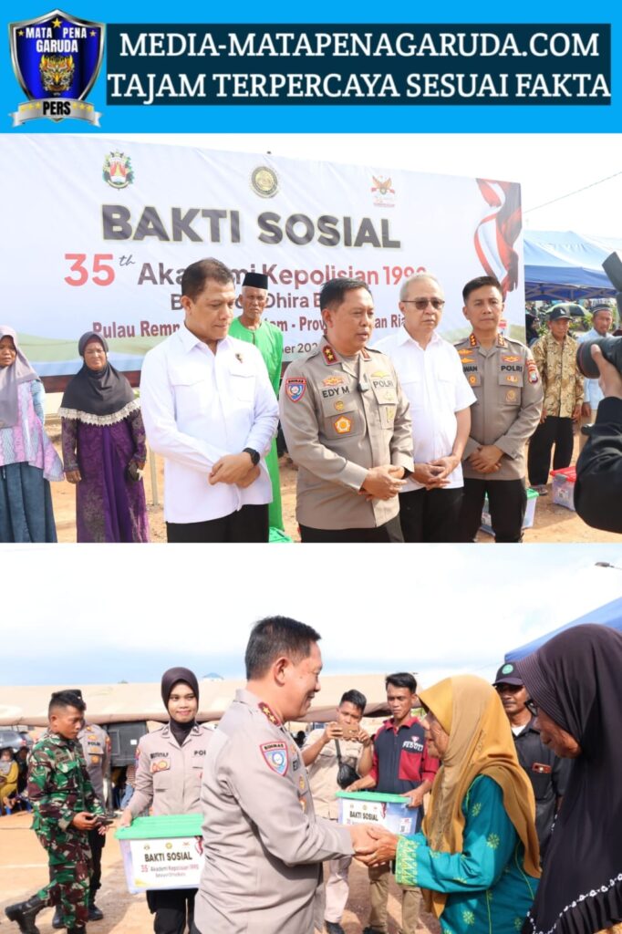 Batam, 18 September 2025 – Korps Binmas Baharkam Polri menyelenggarakan bakti sosial dalam rangka memperingati 35 Tahun Ikatan Keluarga Dhira Brata (IKDB) Alumni Akpol Angkatan 1990 di Perumahan Rempang Eco City, Kelurahan Sembulang, Kecamatan Galang, Batam. Kegiatan dengan tema “Bersama Berbagi Tak Bertepi” ini dihadiri oleh sejumlah pejabat tinggi Polri dan di terima dengan antusias oleh masyarakat setempat.