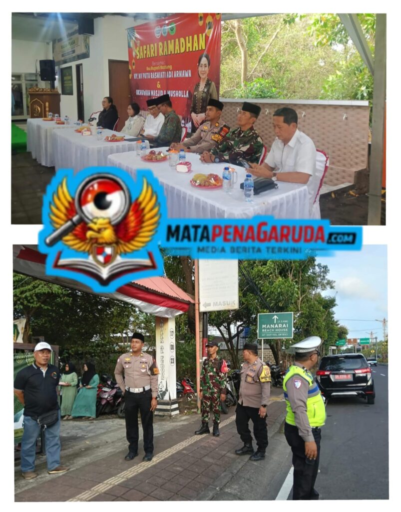 Kuta Selatan – Personel Polsek Kuta Selatan melaksanakan monitoring dan pengamanan kegiatan Safari Ramadhan 1447 H/2026 M yang dihadiri Bupati Badung bersama jajaran pemerintah daerah di Musholla Al-Furqon Nusa Dua, Jalan By Pass Ngurah Rai, Kelurahan Benoa, Kecamatan Kuta Selatan, Kabupaten Badung, Selasa (10/3/2026).