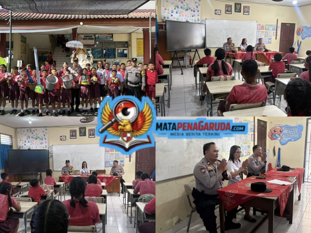 Kuta Selatan,. – Dalam rangka meningkatkan kepedulian terhadap dunia pendidikan serta mempererat hubungan dengan masyarakat, jajaran Polsek Kuta Selatan melalui Unit Binmas melaksanakan kegiatan pembinaan dan penyuluhan (Binluh) yang dirangkaikan dengan penyerahan sarana kontak kepada siswa SD 5 Benoa, Lingkungan Penyarikan, Kelurahan Benoa, Kecamatan Kuta Selatan, Kabupaten Badung, Rabu (1/4/2026) pagi.