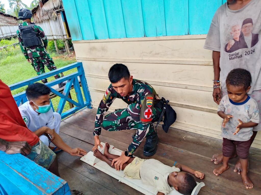 Fayit – Dalam rangka meningkatkan kesehatan masyarakat, personel Satgas Yonif 123/Rajawali bekerja sama dengan Kepala Pusat Kesehatan Fayit melaksanakan Posyandu Keliling di Puskesmas Fayit dan Kampung Ayis. Kegiatan ini merupakan bagian dari posyandu rutin bulanan yang bertujuan untuk melakukan pengecekan kesehatan balita dan ibu hamil pada Kamis (25/09/2025)