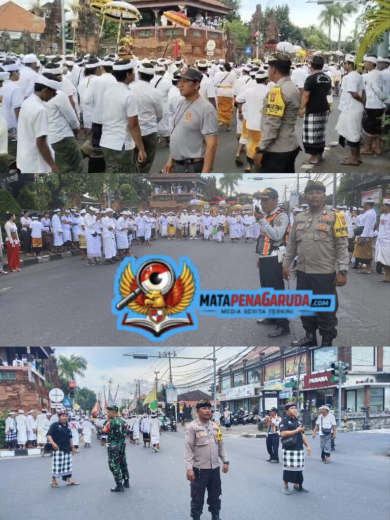 Denpasar,. Rangkaian kegiatan Piodalan dan persembahyangan di Merajan Puri Agung Kesiman yang berlokasi di Jl. Surabi, Denpasar Timur, berlangsung dengan khidmat dan tertib pada Jumat (03/04/2026). Dalam kegiatan tersebut, Bhabinkamtibmas Kelurahan Kesiman Bripka I Wayan Artawa bersinergi bersama Babinsa, Pecalang Desa Adat Kesiman serta Dishub Kota Denpasar dalam melaksanakan pengamanan dan pengaturan kegiatan agar seluruh rangkaian upacara berjalan aman dan lancar.