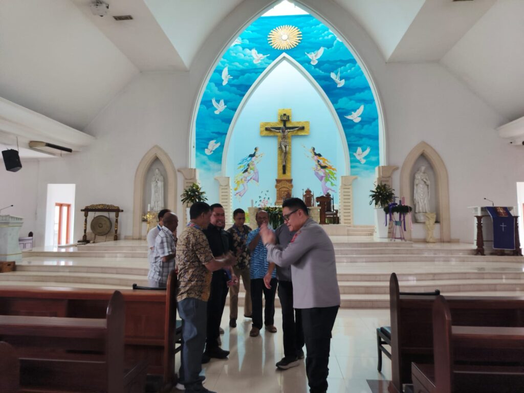Dalam kesempatan tersebut, Kapolsek menyampaikan salam kunjungan serta berkoordinasi langsung dengan Romo dan pihak pengurus gereja. Sejumlah penekanan disampaikan terkait penguatan sistem keamanan internal, pengaturan arus jemaat, serta kesiapan teknis pengamanan pada puncak ibadah Natal yang diperkirakan akan dihadiri oleh ribuan umat.