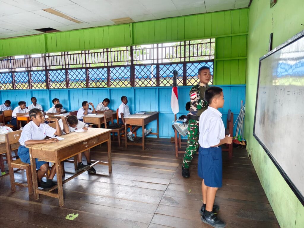 [ SUATOR ] – Satgas Kewilayahan Yonif 123/Rajawali Pos Suator kembali menunjukkan kepeduliannya terhadap dunia pendidikan dengan melaksanakan kegiatan belajar mengajar di salah satu sekolah di wilayah Distrik Suator, Jumat (12/09/2025)