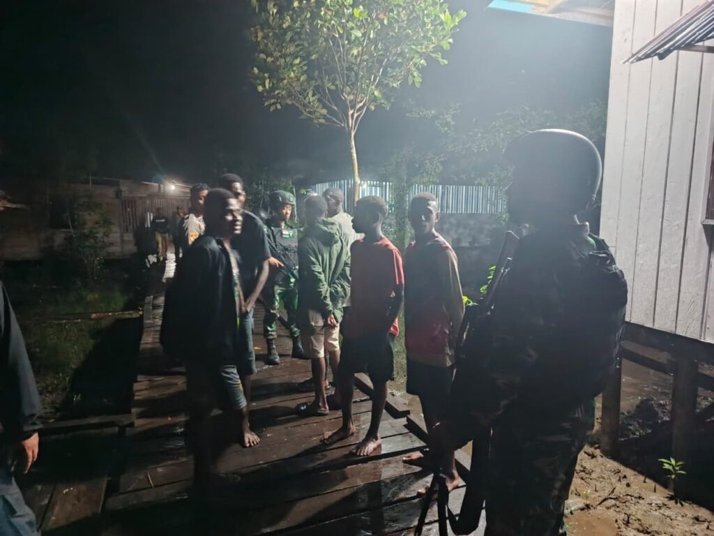 Agats, Papua Selatan – Satgas Pamtas Kewilayahan Yonif 123/Rajawali bersama Polres Asmat melaksanakan patroli gabungan di wilayah Agats, ibu kota Kabupaten Asmat, Selasa (26/8/2025). Kegiatan ini bertujuan untuk menjaga stabilitas keamanan dan menciptakan rasa aman bagi masyarakat.