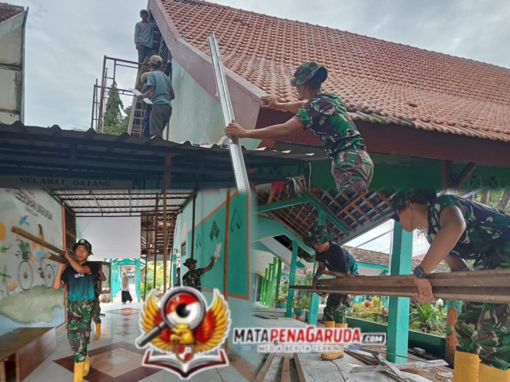 PASURUAN,. Suasana pagi yang masih diselimuti gerimis tipis, kembali bernapas bersama irama palu dan derit bambu. Di halaman SMP Negeri 2 Gondangwetan prajurit Satgas TNI Manunggal Membangun Desa (TMMD) Ke-127 Kodim 0819/Pasuruan bergerak selaras bagai satu tubuh. Seragam loreng hijau tua berpadu dengan sepatu boot kuning cerah menjadi warna dominan yang menghiasi renovasi sekolah di Desa Wonosari, Kecamatan Gondangwetan, Kabupaten Pasuruan, Sabtu (28/2/2026).
