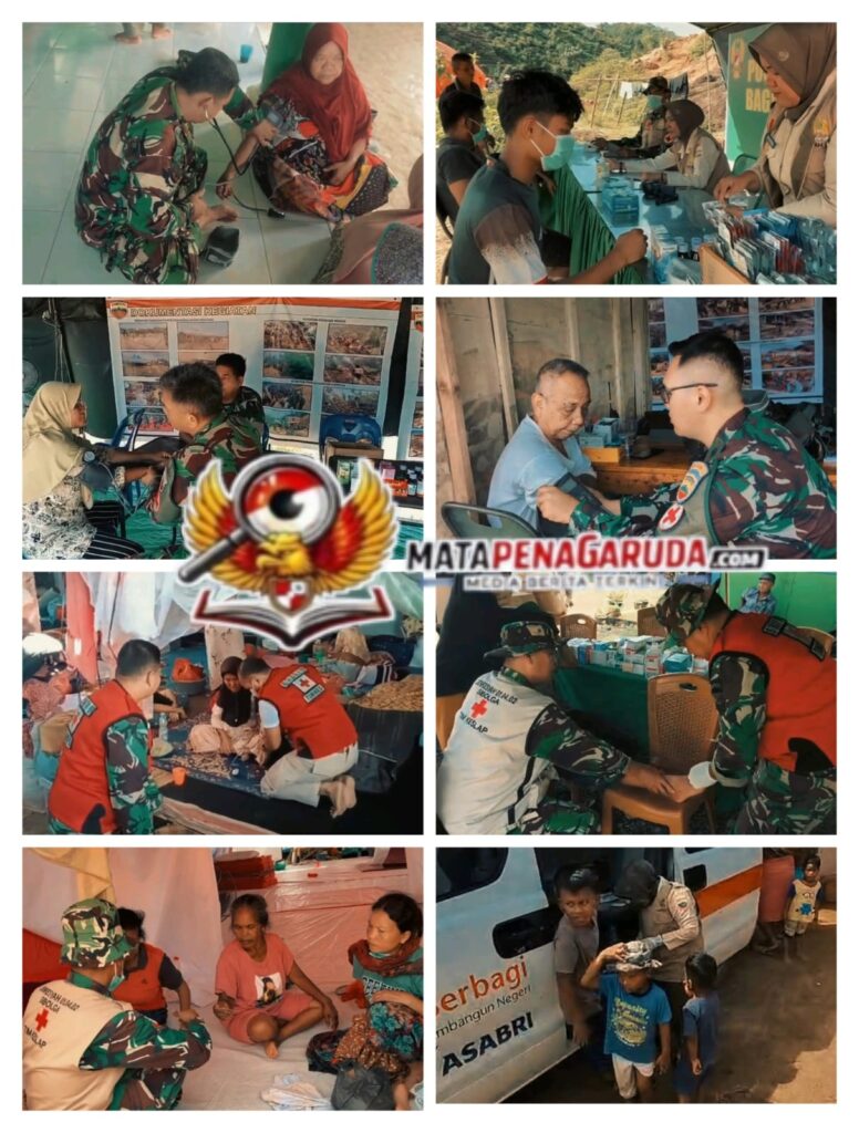 Tim medis TNI Angkatan Darat memberikan pelayanan kesehatan secara langsung kepada warga terdampak bencana, baik di pos-pos pengungsian maupun di pemukiman warga. Pelayanan yang diberikan meliputi pemeriksaan kesehatan umum dan pengobatan gratis bagi masyarakat.