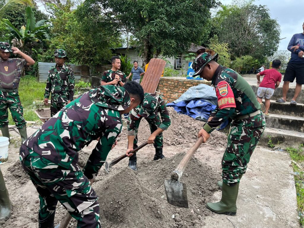 Kegiatan ini dilakukan bersama masyarakat setempat sebagai bentuk kepedulian dan dukungan terhadap sarana ibadah di wilayah binaan. Warga terlihat antusias bergotong royong bersama prajurit TNI dalam memperbaiki fasilitas masjid agar lebih nyaman digunakan.