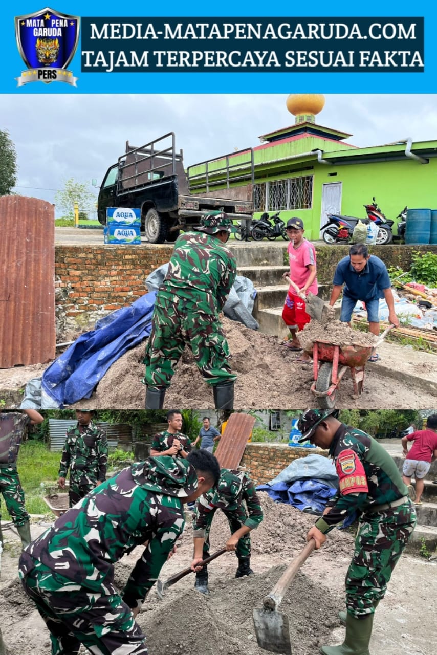 Kegiatan ini dilakukan bersama masyarakat setempat sebagai bentuk kepedulian dan dukungan terhadap sarana ibadah di wilayah binaan. Warga terlihat antusias bergotong royong bersama prajurit TNI dalam memperbaiki fasilitas masjid agar lebih nyaman digunakan.