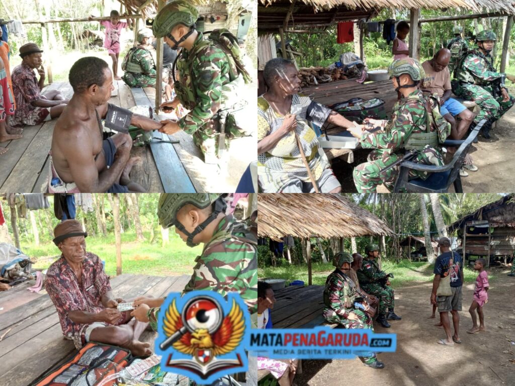 Selain menjalankan tugas patroli pengamanan wilayah, personel Satgas juga aktif berinteraksi dengan masyarakat melalui kegiatan anjangsana dan komsos guna mempererat hubungan serta menciptakan rasa aman. Tak hanya itu, pelayanan kesehatan sederhana juga diberikan sebagai bentuk kepedulian terhadap kondisi masyarakat di wilayah penugasan.