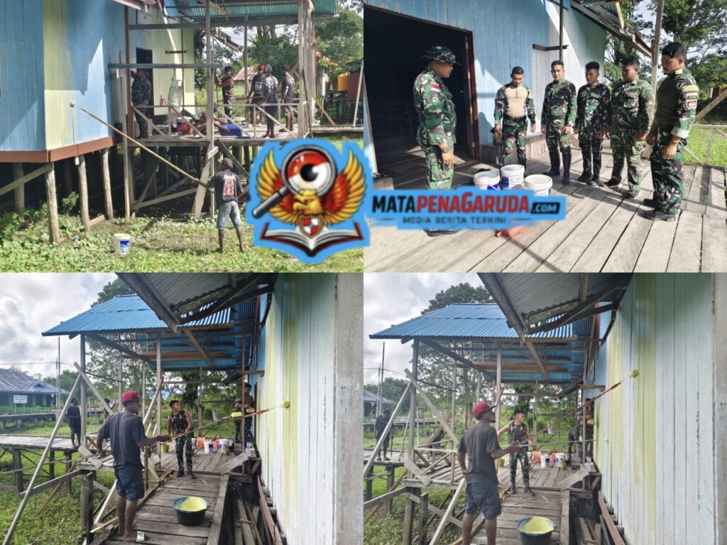 Asmat, Papua Selatan – Dalam rangka menyambut Hari Kenaikan Isa Almasih yang jatuh pada tanggal 5 April 2026, personel Satuan Tugas (Satgas) Pengamanan Perbatasan (Pamtas) Kewilayahan Yonif 123/Rajawali, khususnya yang bertugas di Pos Suator, tak tinggal diam. Bersama dengan warga Kampung Binam, Distrik Suator, Kabupaten Asmat, mereka menggelar aksi bersih-bersih dan pengecatan di Gereja Kampung Binam.Kamis, (02/04/2026).