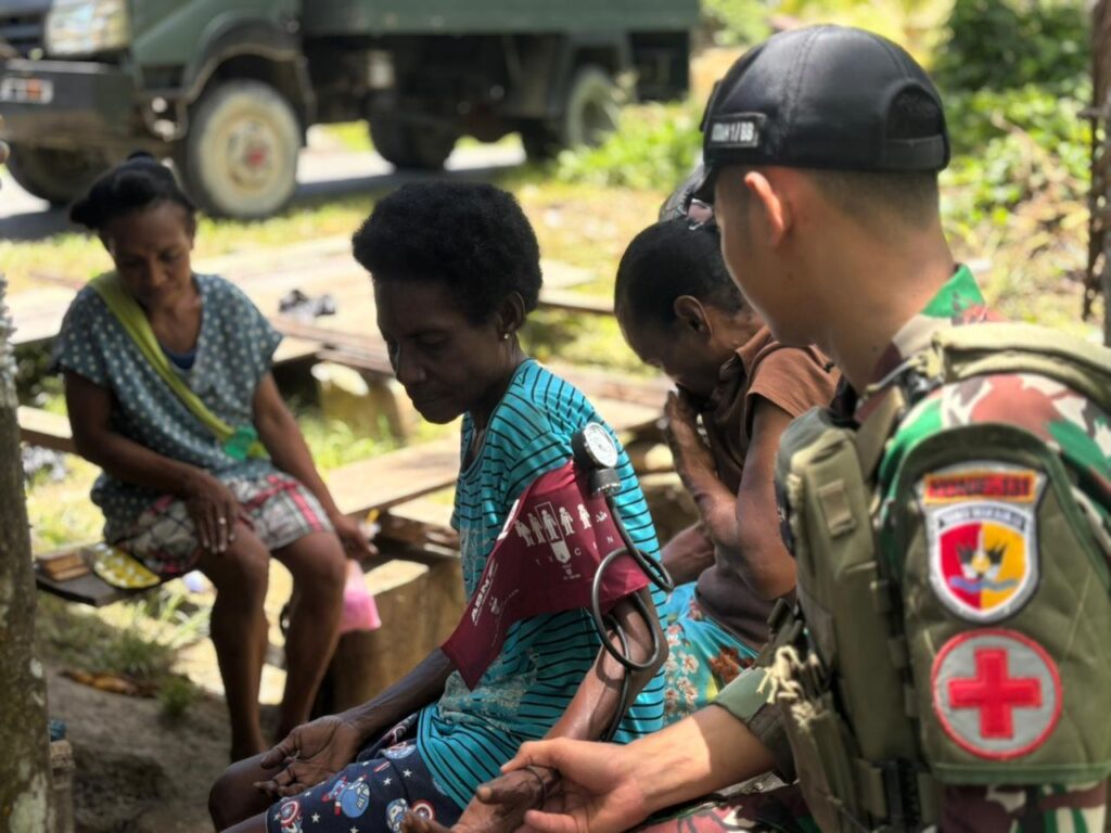 [ KEEROM ] – Satgas Pamtas RI-PNG Yonif 131/Brajasakti terus menunjukkan kepeduliannya terhadap kesehatan masyarakat di perbatasan. Kali ini, personel Pos Wembi yang di pimpin Serda Andika melaksanakan pelayanan kesehatan secara door to door di Kampung Wembi, Distrik Mannem, Kabupaten Keerom, Senin (22/9/2025).