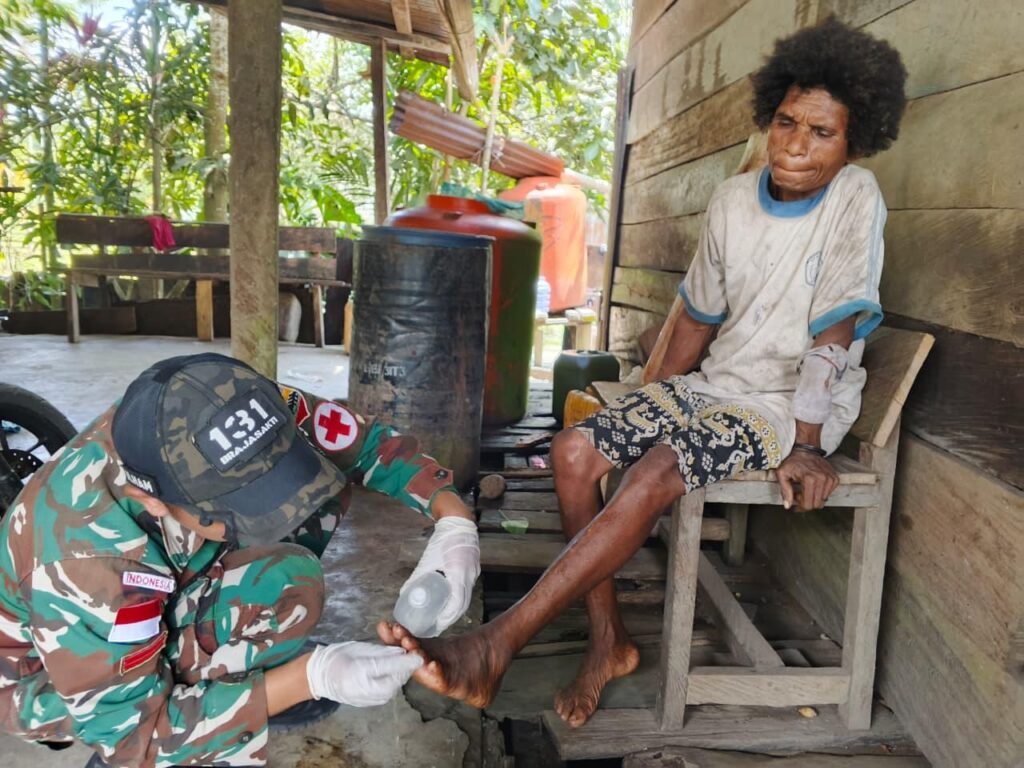 [ KEEROM ] – Satgas Pamtas RI-PNG Yonif 131/Brajasakti kembali menunjukkan kepeduliannya kepada masyarakat perbatasan dengan memberikan pelayanan kesehatan gratis di Kampung Sawiyatami, Distrik Mannem, Kabupaten Kerom, Papua, Jumat (19/9/2025).