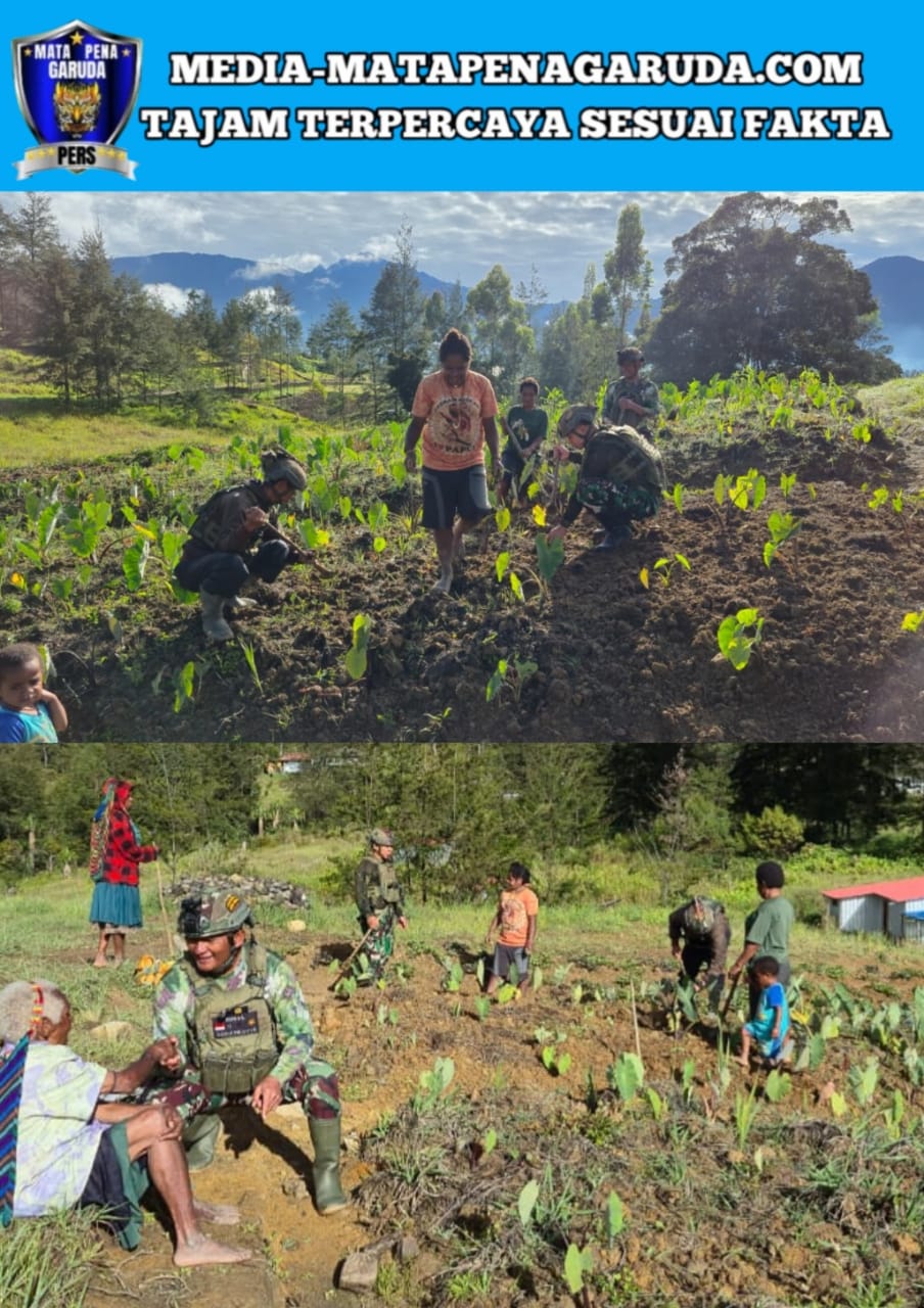 [ PUNCAK PAPUA, 17 Oktober 2025 ] — Di tengah kesejukan alam pegunungan Papua, semangat kebersamaan antara prajurit TNI dan masyarakat kembali terpancar. Satgas Yonif 700/Wira Yudha Cakti (WYC) melalui Pos Titik Kuat Bendungan melaksanakan kegiatan Pembinaan Teritorial (Binter) terbatas dengan aksi nyata membantu warga Kampung Nipuralome, Distrik Omukia, Kabupaten Puncak, menanam keladi di lahan perkebunan warga.