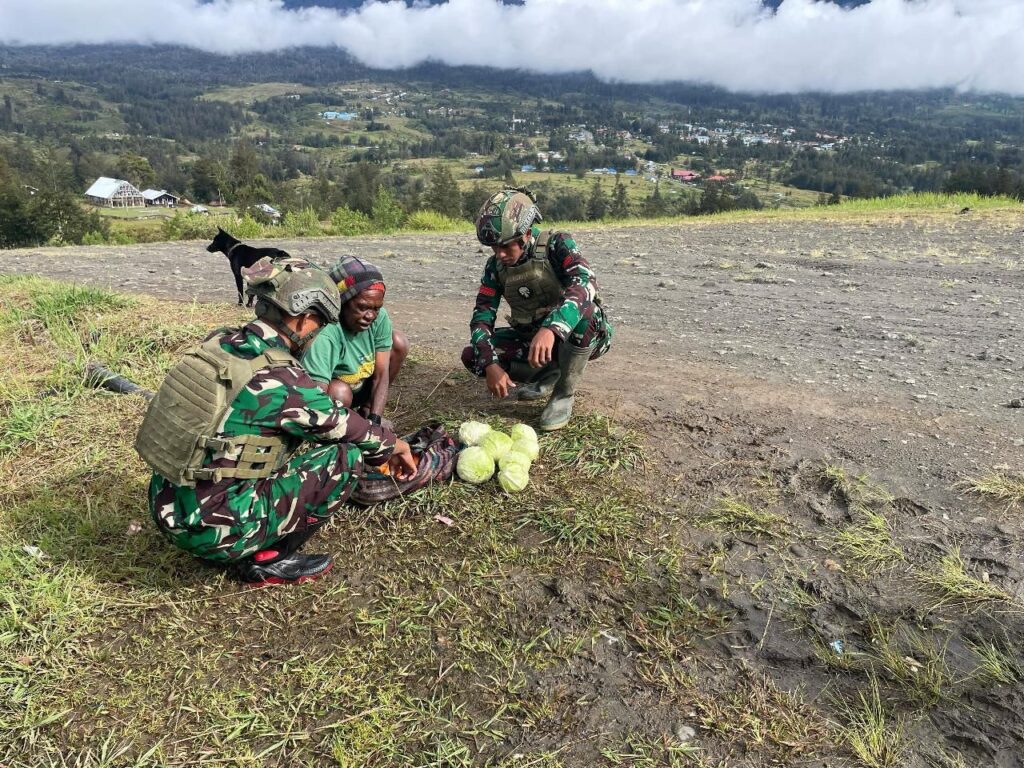 [ PUNCAK ] — Prajurit TNI dari Satgas Yonif 700/Wira Yudha Cakti kembali menunjukkan kepedulian dan keberadaannya sebagai sahabat masyarakat di wilayah pegunungan Papua. Melalui Pos Titik Kuat Koper, para prajurit melaksanakan kegiatan Binter terbatas dengan aksi nyata — memborong hasil tani milik warga Kampung Wako, Distrik Gome, Kabupaten Puncak. (18 Oktober 2025)
