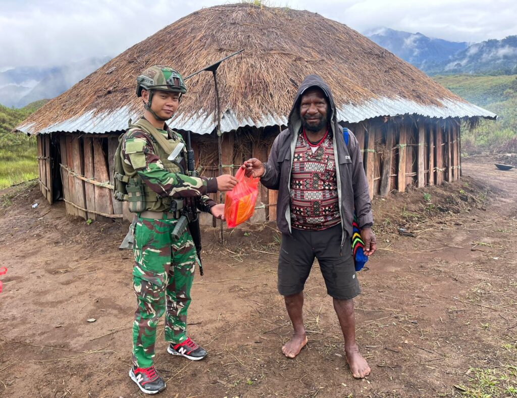 Kegiatan yang dipimpin oleh Serda Hermawan itu berlangsung di Honai Mama Mute, salah satu tokoh perempuan yang dikenal aktif dalam kehidupan sosial masyarakat Kampung Wako. Dalam kegiatan tersebut, prajurit Satgas membagikan beras, biskuit, serta bibit kacang panjang kepada warga sebagai bentuk dukungan terhadap kebutuhan pangan dan semangat ketahanan pangan masyarakat setempat.