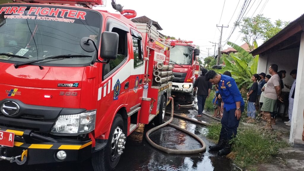 DENPASAR – BALI,. Rumah hunian milik warga yang berprofesi sebagai tukang pijat ludes di lahap si jago merah di Jl. Wirajaya, Desa Ubung Kaja, kec. Denpasar Utara, Denpasar Bali, Sabtu 25/10/25.