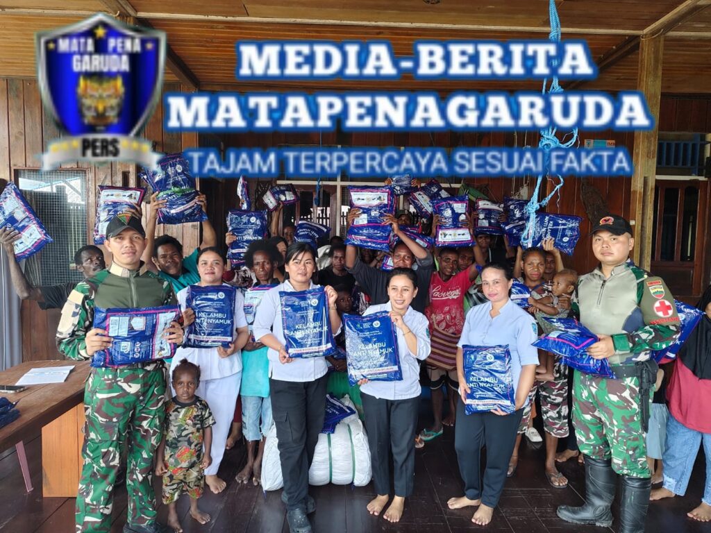 [ ASMAT ] – Personel Pos Suator Satgas kewilayahan Yonif 123/Rajawali bersama tenaga medis Puskesmas Distrik Suator melaksanakan kegiatan Pos Pelayanan Terpadu (Posyandu) serta pembagian kelambu kepada masyarakat, Selasa (06/01/2026), bertempat di Kampung Binam dan Kampung Emnam, Distrik Suator, Kabupaten Asmat.