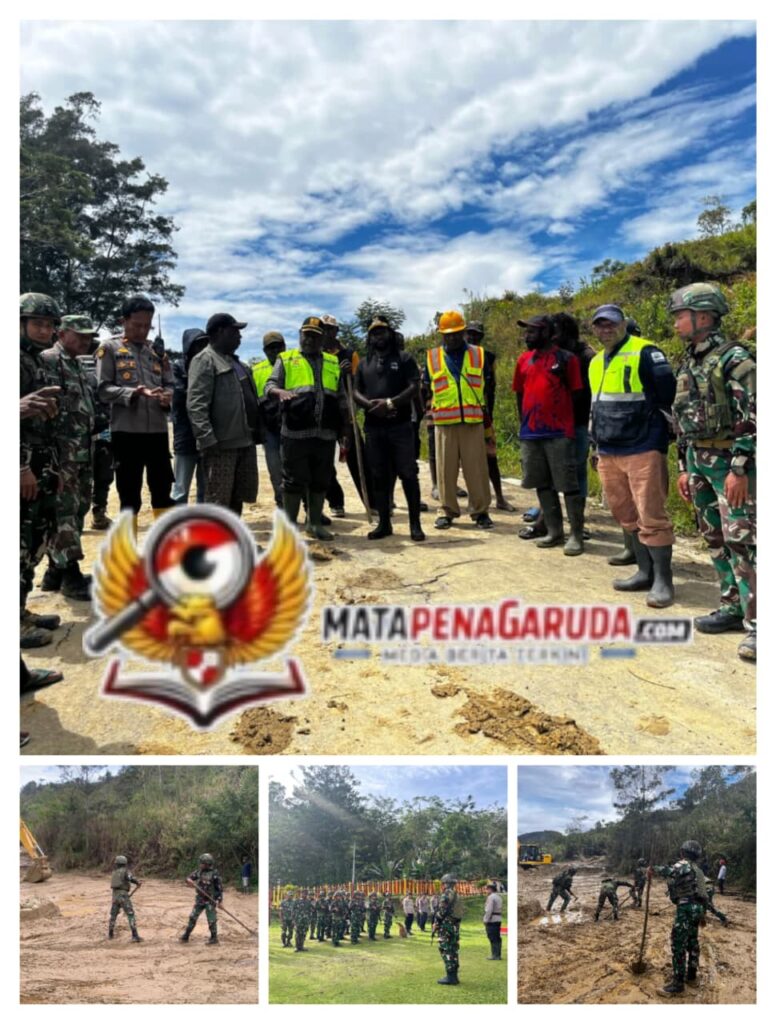 Sinergitas TNI–POLRI, Satgas Yonif 521/DY Karya Bhakti Tangani Tanah Longsor di Distrik Kelila