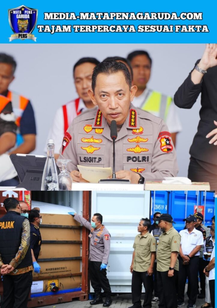 Jakarta – Kapolri Jenderal Listyo Sigit Prabowo menghadiri konferensi pers operasi gabungan DJBC-DJP Kemenkeu dan Satgassus Optimalisasi Penerimaan Negara Polri terkait temuan 87 kontainer pelanggaran ekspor produk turunan CPO (Crude Palm Oil) di TPS Multi Terminal Indonesia – NPCT Common Area, Tanjung Priok, Jakarta Utara, Kamis (6/11/2025).