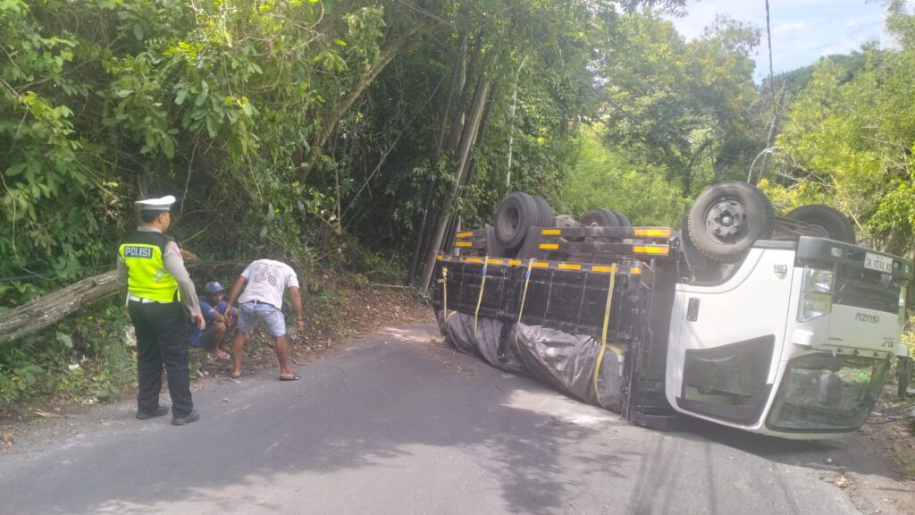 Lebih lanjut IPTU Ida Bagus Surdika menambahkan bahwa pihaknya juga telah berkoordinasi dengan pemilik kendaraan untuk segera mendatangkan mobil derek guna mengevakuasi truk yang terguling. “Kami mengimbau kepada para pengemudi, khususnya kendaraan bermuatan berat, agar lebih memperhatikan kondisi medan dan memilih jalur yang sesuai demi keselamatan bersama,” tambahnya.