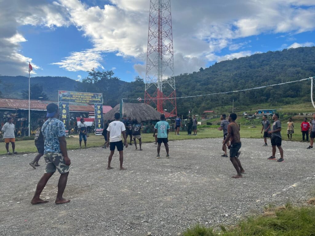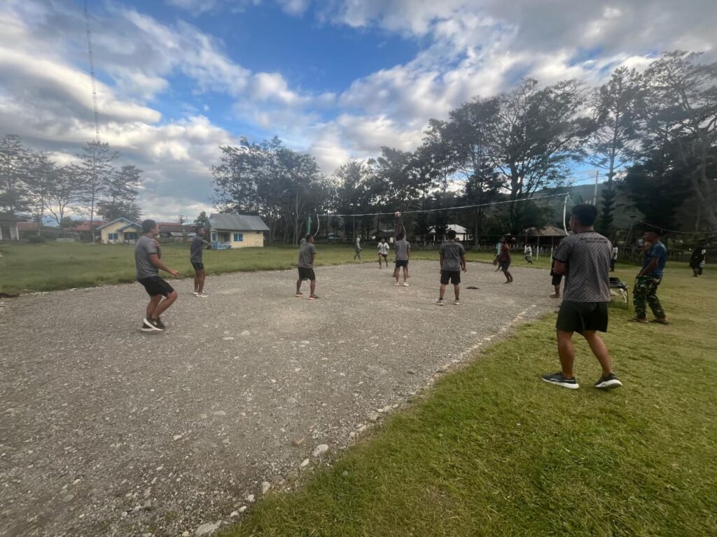Jayawijaya ~ Dalam rangka membangkitkan semangat berolahraga, Satgas Yonif 521/DY melalui Pos Bolakme mengajak warga masyarakat melaksanakan olahraga bersama di Lapangan Volley Pos Bolakme, Kab. Jayawijaya, Papua Pegunungan. (21/10/2025). Danpos Bolakme Letda Inf Reza Yudha Prasetya, S.Tr.Han mengatakan bahwa kegiatan ini merupakan salah satu upaya Satgas Yonif 521/DY untuk mendukung kegiatan olahraga dan menumbuhkan bakat serta minat berolahraga warga masyarakat di Distrik Bolakme.” Dengan adanya kegiatan olahraga bersama ini, diharapkan masyarakat khususnya para pemuda dapat mengembangkan kemampuan berolahraga dalam hal ini yaitu olahraga voli yang harapannya nanti mampu meraih prestasi dalam bidang olahraga, ” ucap Danpos.” Tidak hanya itu, kami juga mengajak masyarakat untuk makan dan minum bersama, bersenda gurau, saling bercerita, menjalin komunikasi yang baik, semua itu tidak lain untuk menunjukkan bahwa TNI dan rakyat solid dan harmonis, ” tambah Danpos.