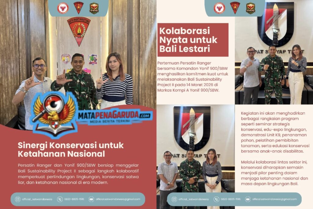 Denpasar, 6 Maret 2026 – Batalyon Infanteri 900/Satya Bhakti Wirottama (Yonif 900/SBW) menyambut dengan penuh antusias kunjungan serta inisiatif kerja sama dari Persatin Ranger dalam rangka persiapan pelaksanaan Bali Sustainability Project II yang mengusung tema “Penguatan Konservasi sebagai Pilar Ketahanan Nasional di Era Modern.”